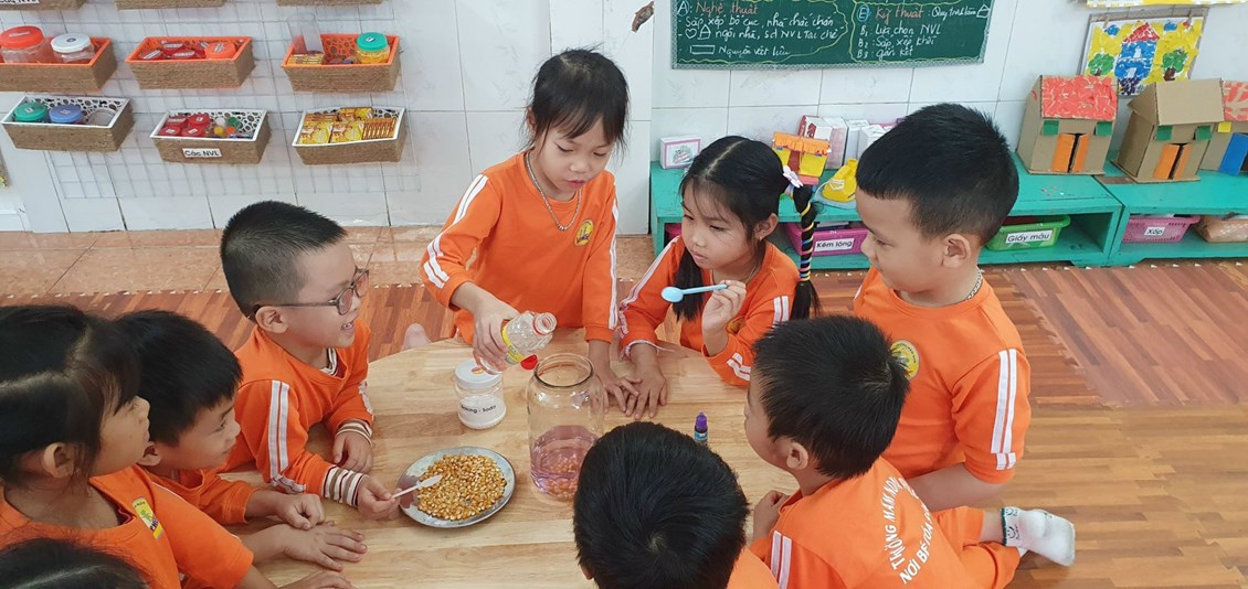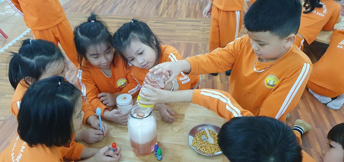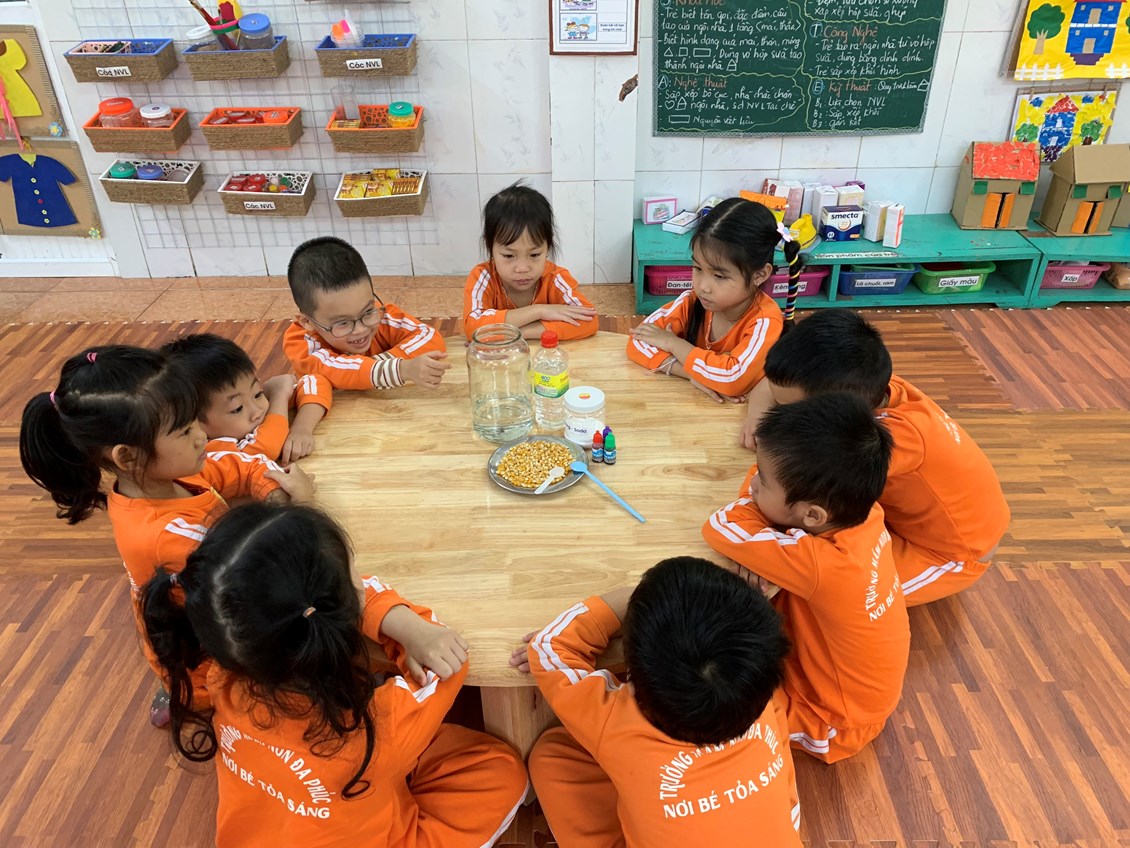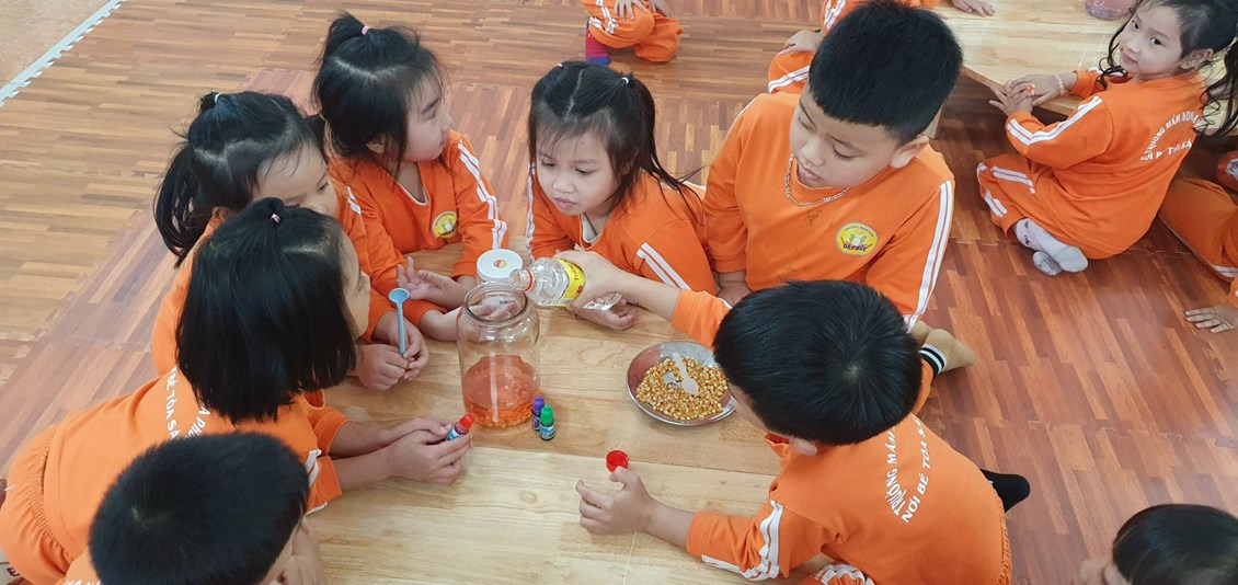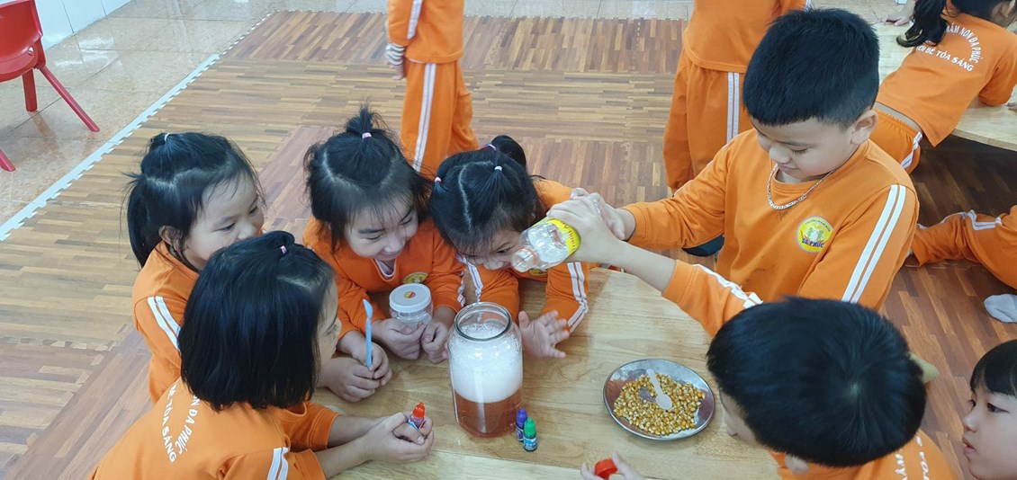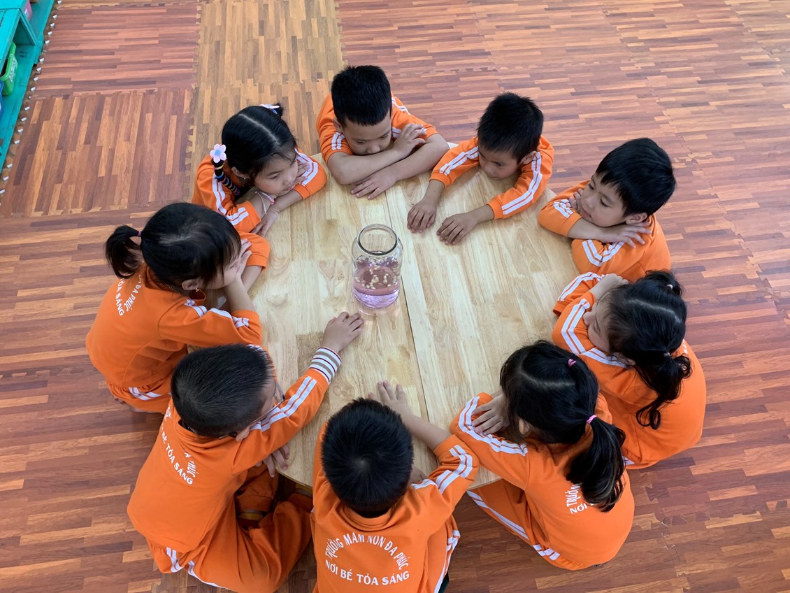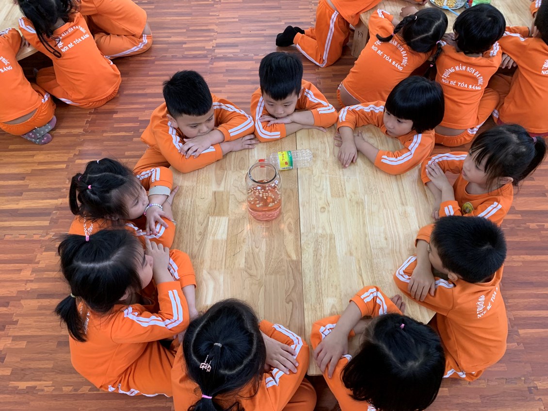Dưới đây là hình ảnh các bạn nhỏ lớp 5TA3 thực hiện thí nghiệm thú vị này: