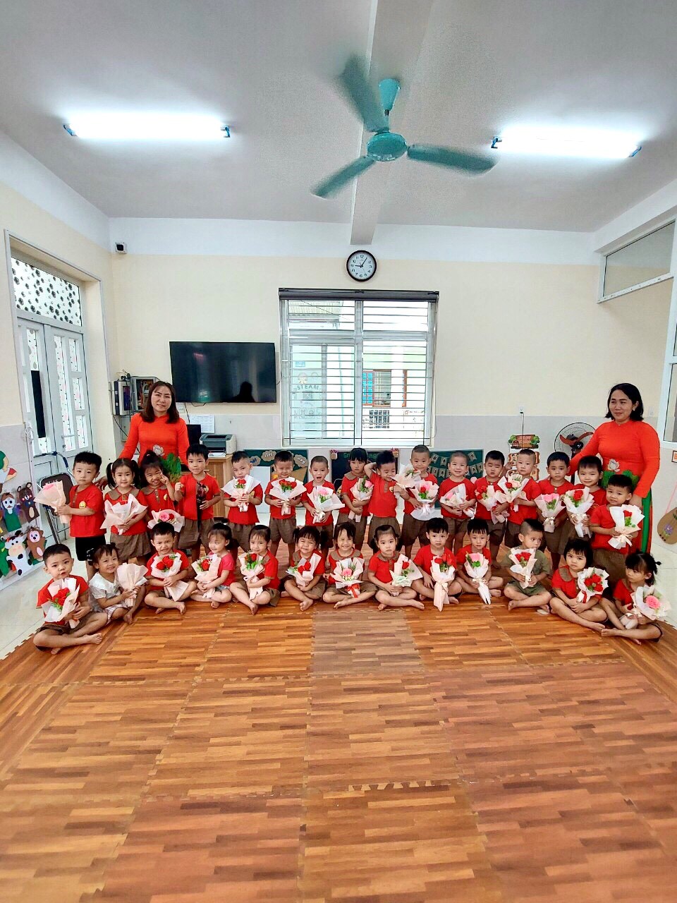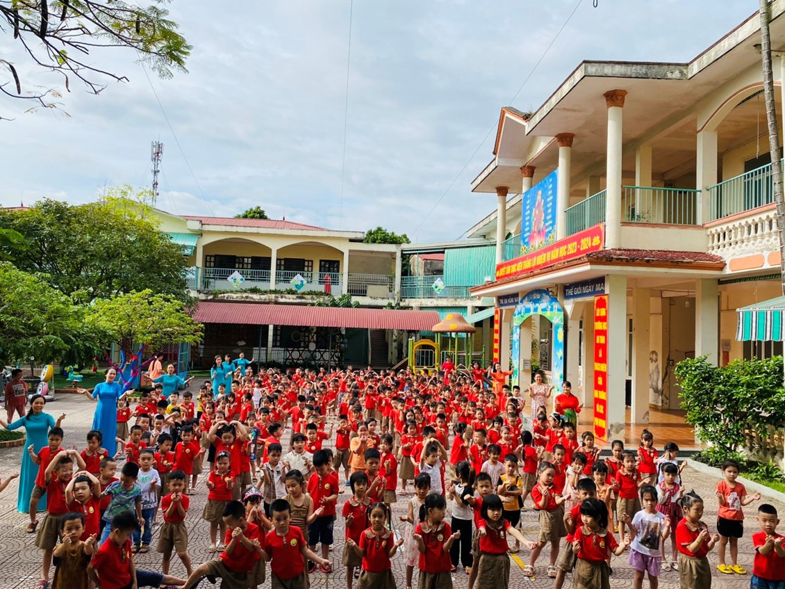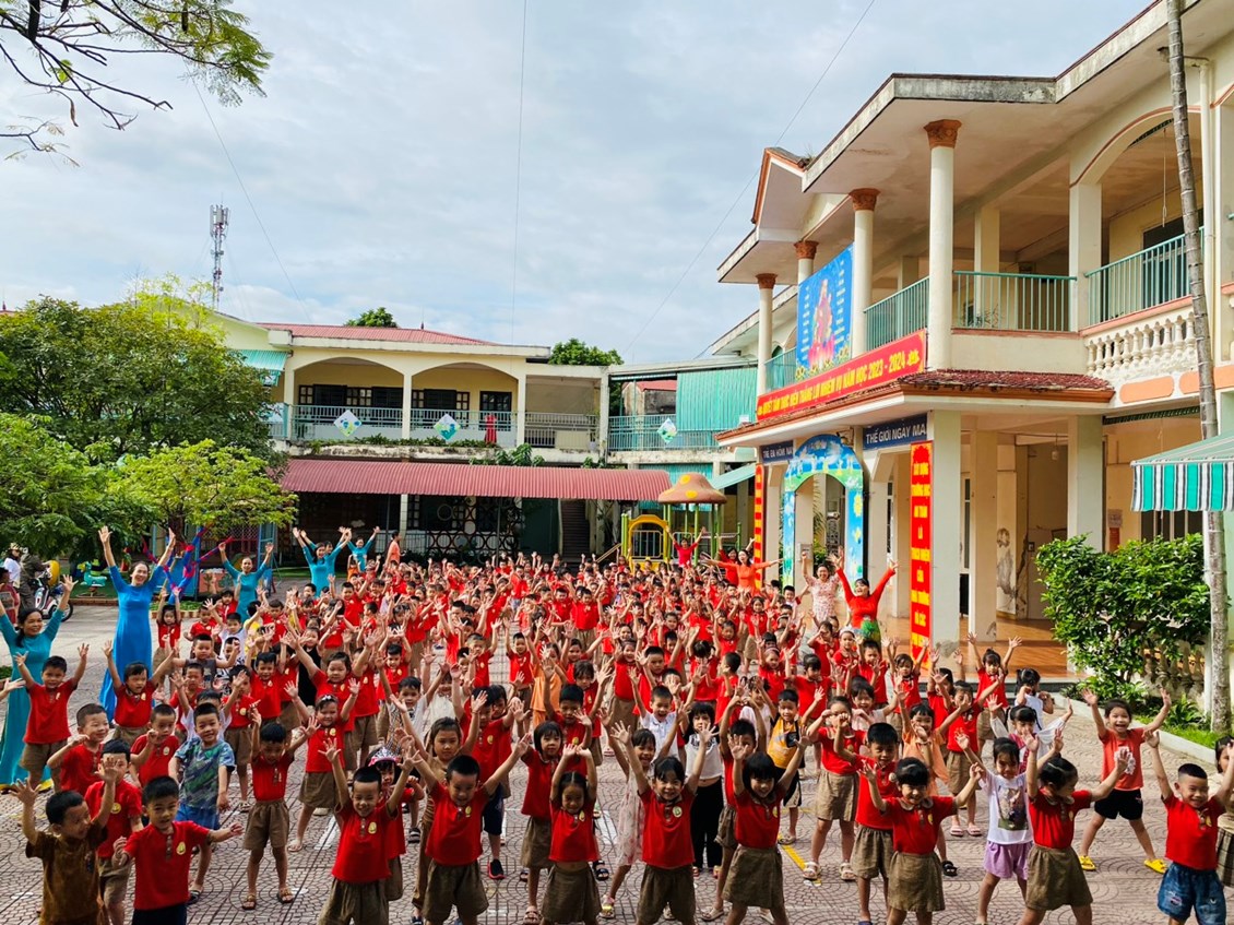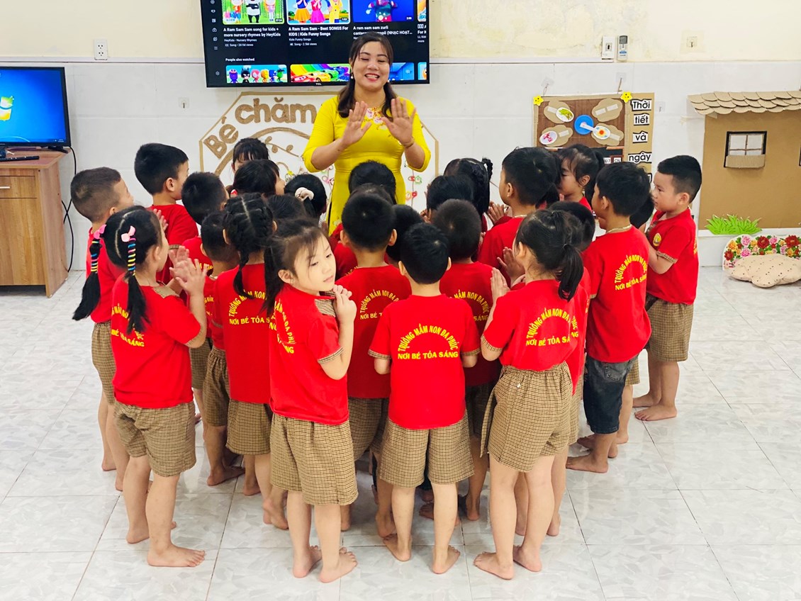 Điệu nhảy dân vũ tập thể của các cô giáo và trẻ