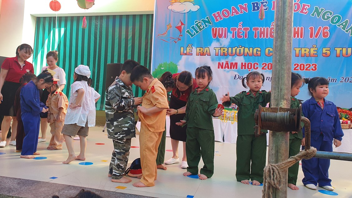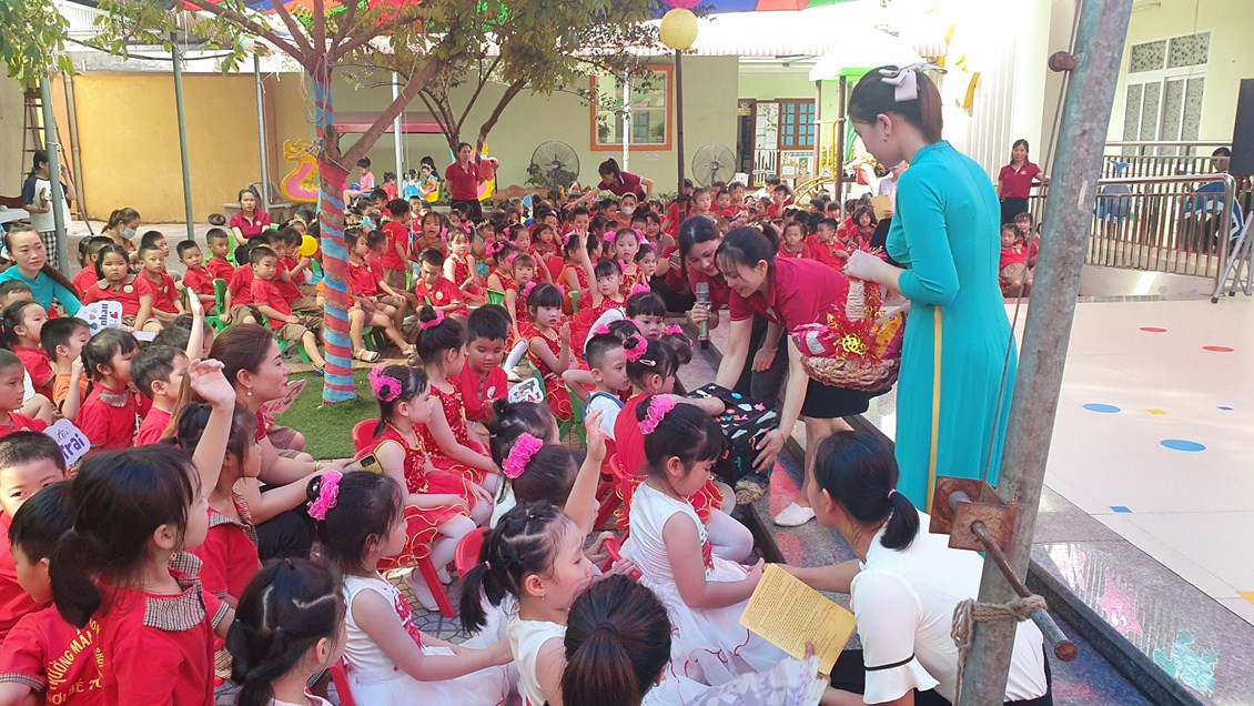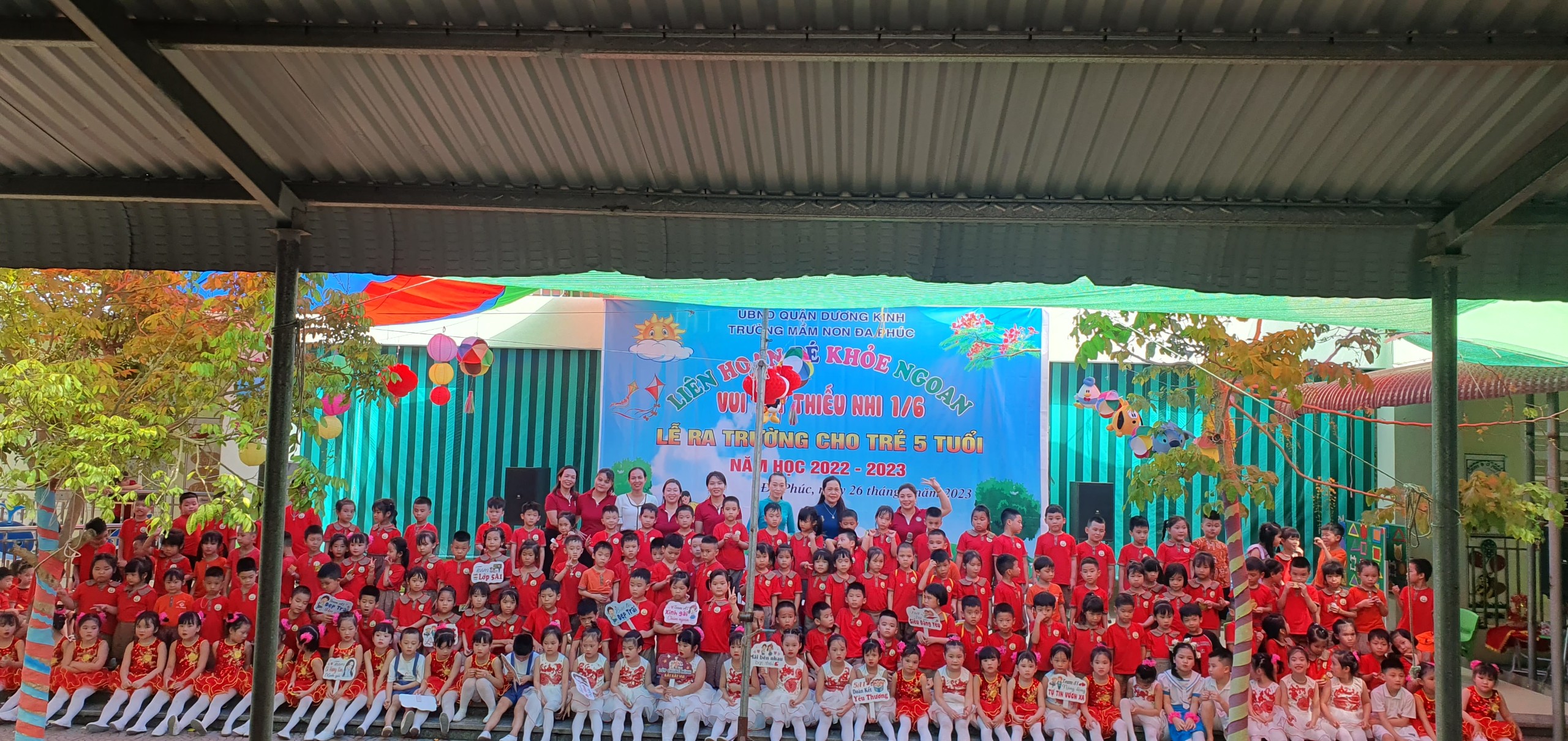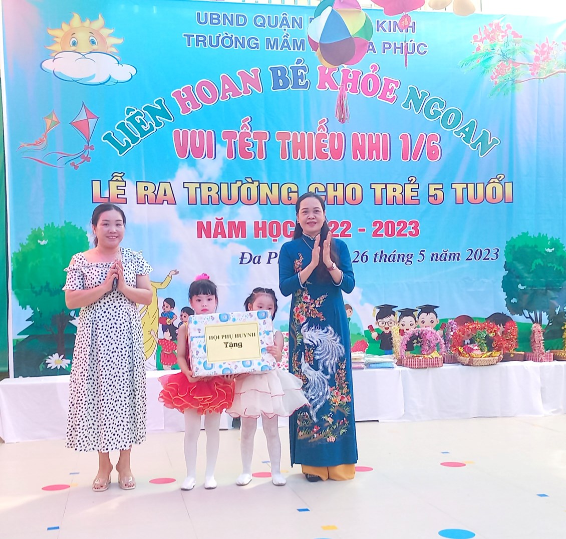 Về dự buổi Liên hoa có các đồng chí đại diện cho lãnh đạo PGD&ĐT quận Dương Kinh, các đồng chí lãnh đạo địa phương, các bậc phụ huynh và có đông đủ các cô giáo cùng 483 bạn học sinh trong toàn trường. Chương trình ''Liên hoan Bé khỏe ngoan - Vui Tết Thiếu nhi 1/6 - Lễ ra trường cho trẻ 5 tuổi. Năm học 2022 -2023'' được tổ chức theo các nội dung, hoạt động các lĩnh vực phát triển của trẻ trong chương trình giáo dục mầm non, bám sát nội dung và kết quả mong đợi về kiến thức, kỹ năng của trẻ theo từng độ tuổi. Đảm bảo tính khách quan, trung thực, công bằng được diễn ra nhẹ nhàng dưới nhiều hình thức, trẻ đã được giao lưu học hỏi các bạn góp phần mạnh dạn, tự tin tạo cho trẻ không khí phấn khởi, thân thiện.