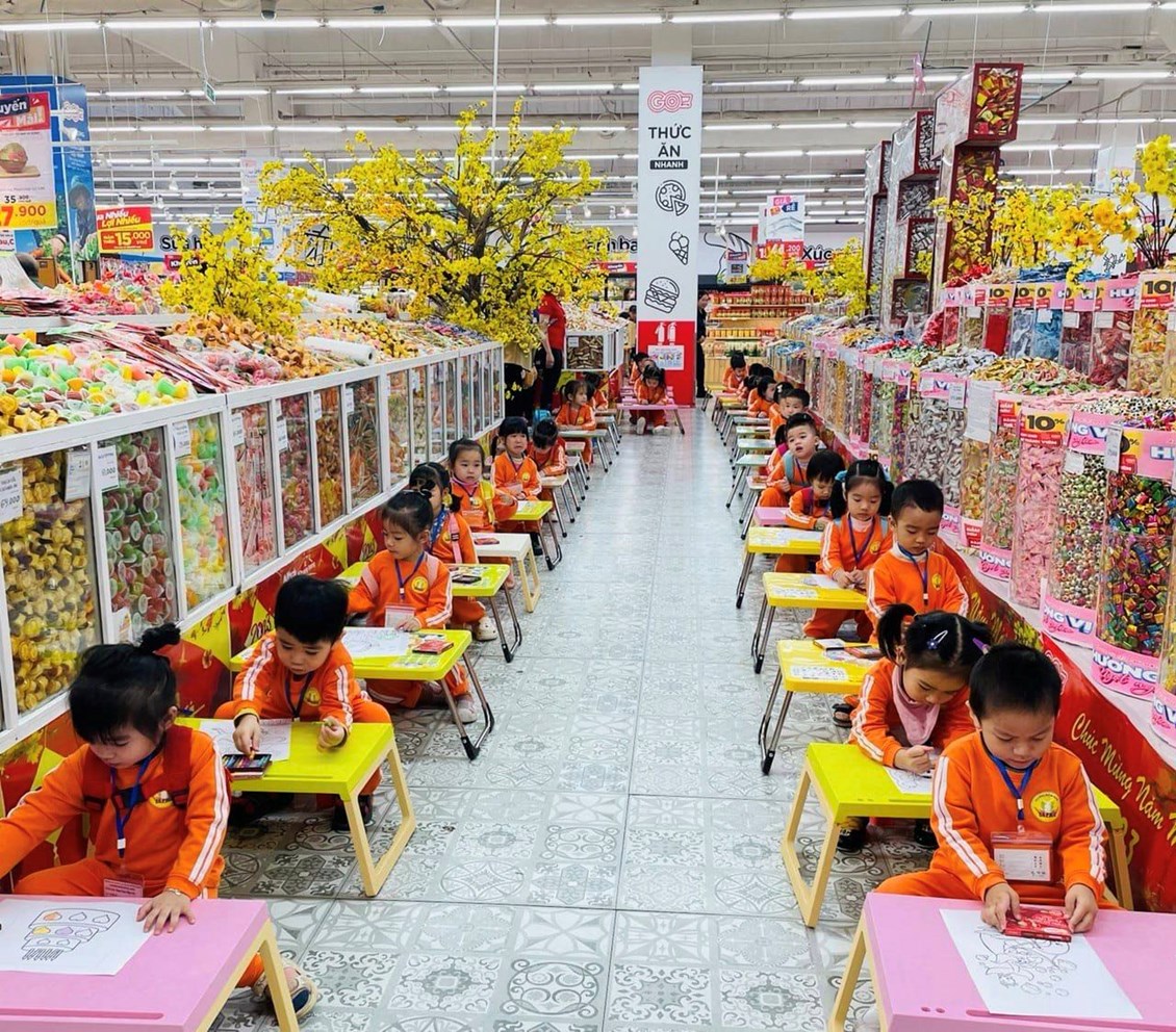 Bắt đầu một buổi sáng tràn đầy năng lượng, các bạn nhỏ đã vô cùng háo hức và “bật chế độ” sẵn sàng để chào đón một chuyến “phiêu lưu” đầy thú vị tại một địa điểm tuy quen mà lại cực kỳ lạ lẫm, đó chính là… siêu thị.