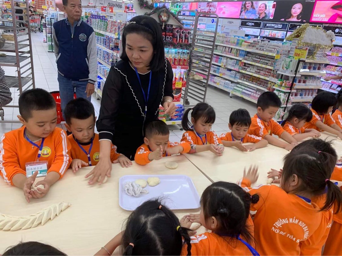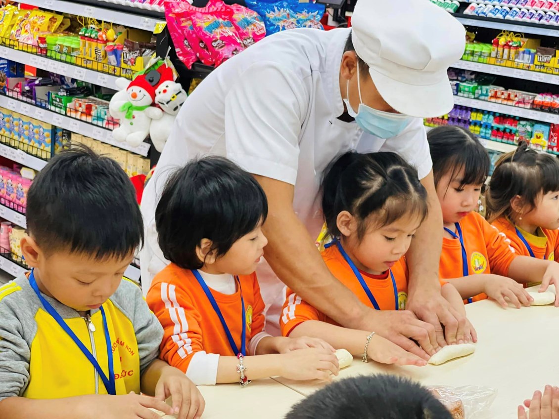 Cánh cửa siêu thị mở ra, mang đến cho các bạn nhỏ một thế giới của muôn vàn những món hàng hóa. Và với sự hướng dẫn của cô giáo, các con đã cùng nhau tìm hiểu các gian hàng khác nhau như thực phẩm về rau củ, thịt cá, trứng sữa, hay các món đồ dùng cá nhân, đồ dùng gia đình… Bên cạnh đó các con được trải nghiệm vẽ tranh và làm bánh nữa.