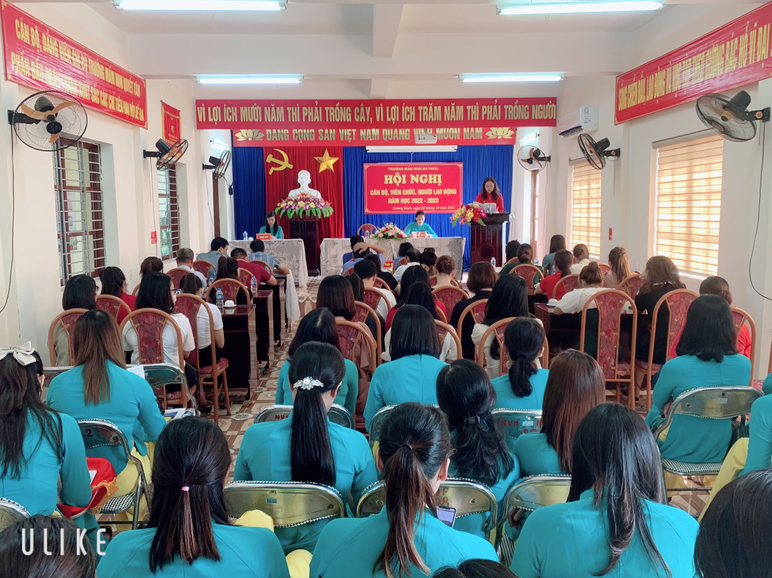 Công đoàn và nhà trường đã khen thưởng các đồng chí cán bộ giáo viên nhân viên đã có thành tích xuất sắc và tốt trong năm học 2021-2022. Hội nghị đã thông qua Nghị quyết với nhiều nội dung quan trọng về các mảng: công tác chính trị tư tưởng; công tác thi đua đồng thời kêu gọi toàn thể CBVC phát huy những thành tích đã đạt được, phấn đấu thực hiện thắng lợi nhiệm vụ chính trị, tích cực đóng góp công sức và trí tuệ xây dựng nhà trường vững mạnh. Thay mặt ban thi đua nhà trường đồng chí Phạm Thị Quyên phát động phong trào thi đua năm học 2022-2023 và ký kết giao ước thi đua năm học mới.