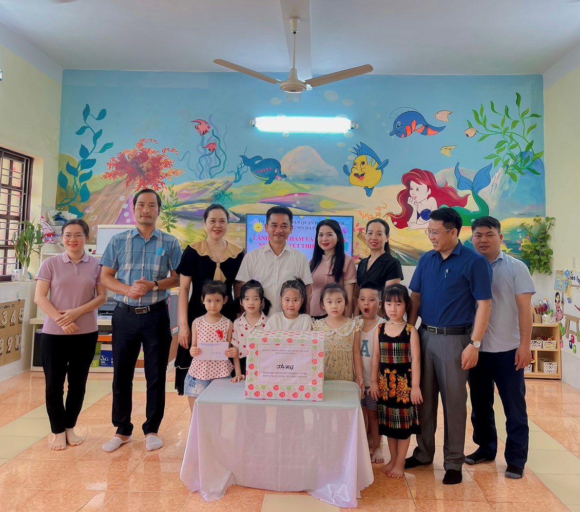 Đồng chí Nguyễn Trí Nhân - Phó chủ tịch UBND quận , đồng chí Nguyễn Chí Linh - Trưởng phòng GDĐT cùng đoàn đã đến thăm, tặng quà các cháu thiếu nhi tại trường mầm non Đa Phúc, chúc các cháu luôn mạnh khỏe, chăm ngoan, học giỏi, vâng lời thầy cô giáo, ông bà, cha mẹ, xứng đáng là con ngoan trò giỏi, cháu ngoan Bác Hồ. Đồng thời các đồng chí lãnh đạo cũng ghi nhận những kết quả đạt được trong công tác bảo vệ, chăm sóc và giáo dục thế hệ trẻ của trường Mầm non Đa Phúc thời gian qua. Đồng thời, mong muốn các trường trên địa bàn phường tiếp tục giữ vững và phát huy những thành tích đạt được, nâng cao hơn nữa chất lượng công tác chăm sóc, giáo dục và bảo vệ trẻ em.