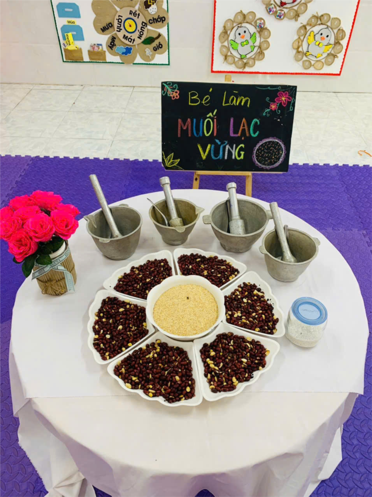 Hôm nay các bé đã có một buổi học thật vui khi cùng cô trải nghiệm làm món muối lạc vừng – món ăn dân dã, thơm ngon trong bữa cơm Việt 💕
