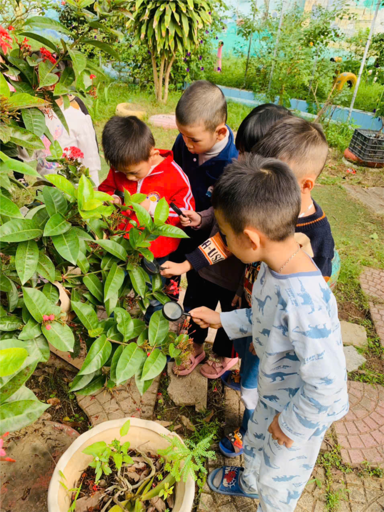 🌿 Hoạt động khám phá ngoài trời: Quan sát thiên nhiên bằng kính lúp, khám phá những chi tiết nhỏ xíu mà bình thường khó nhìn thấy.