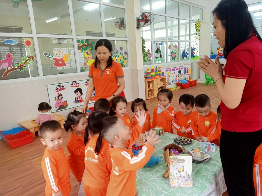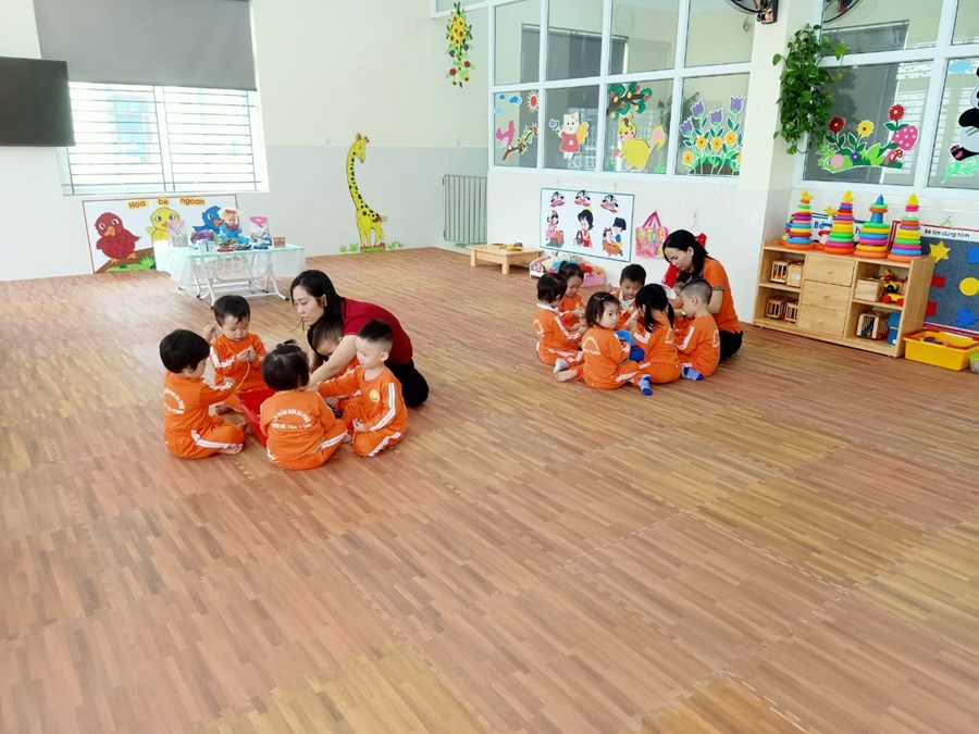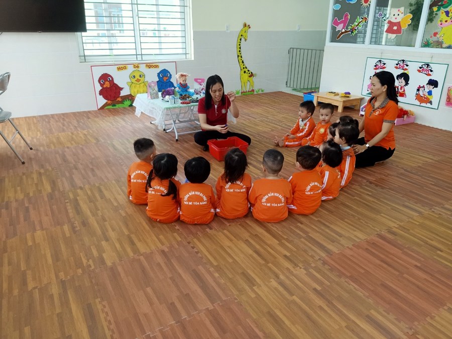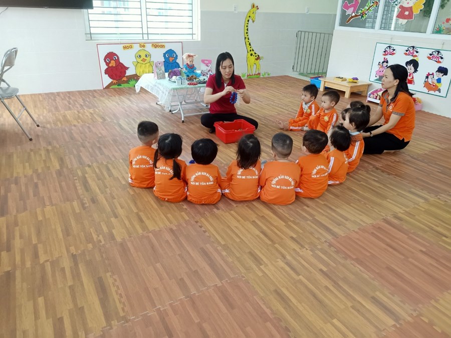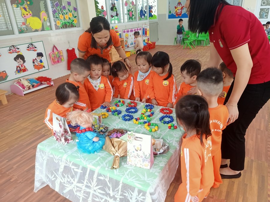 Một số hình ảnh giờ học "Xâu vòng tặng cô" do cô Hoàng Thị Phương hướng dẫn: