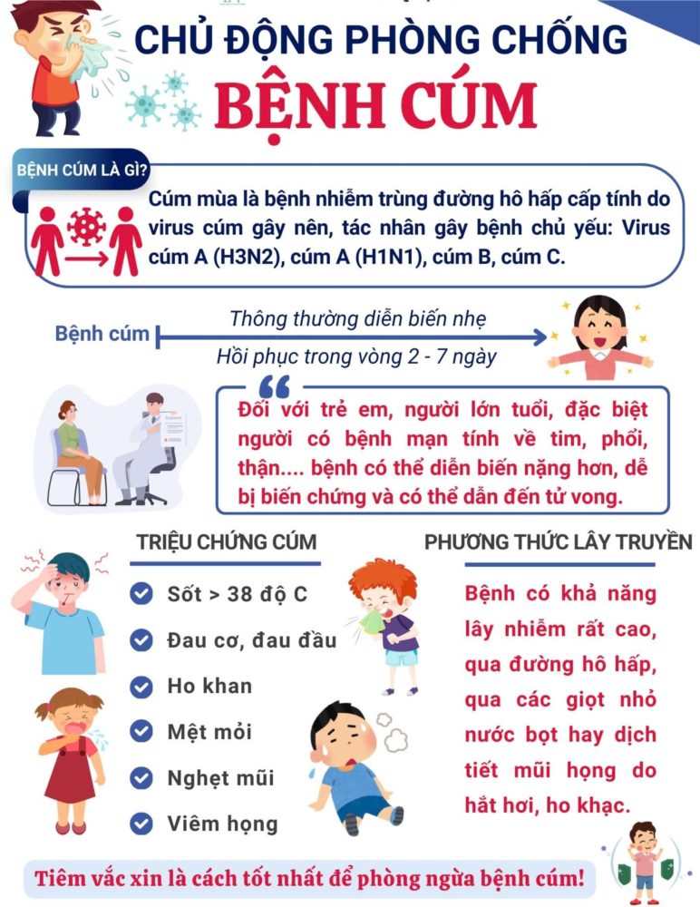 - Tiêm vắc-xin cúm hàng năm cho trẻ và cán bộ, giáo viên trong trường.